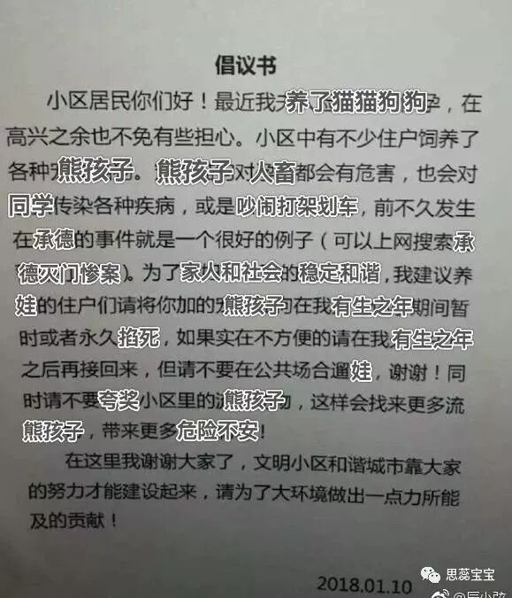 @黑夜给了我黑的肤色:我觉得倒也不是猫狗的问题,主要是他太把自己当回事儿了。如果照他这个说法,小区里的小孩打闹可能冲撞他老婆,那是不是得把别人家的小孩送走?小区有人感冒会传染他们家,那别人岂不是不能在他家旁边住了?