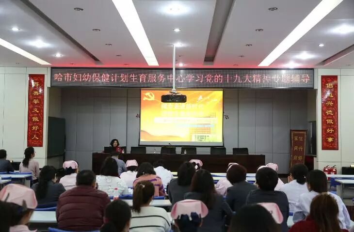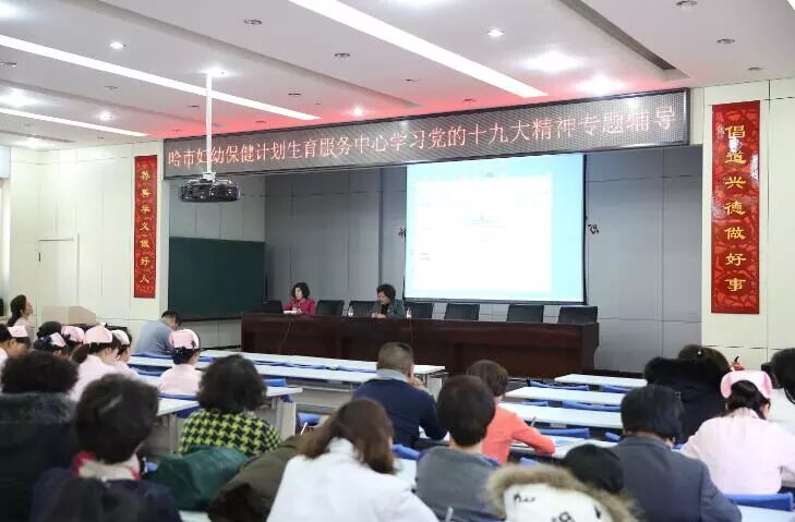 12月4日下午2:30分,哈尔滨市妇幼保健计划生育服务中心组织学习“党的十九大精神”专题辅导,会议由常红副主任主持,聘请了市委党校李天明教授做了以“阔步走进新时代,迎接壮美新未来”为主题的学习贯彻党的十九大精神宣讲,中心领导班子成员和全体职工认真聆听、学习。
