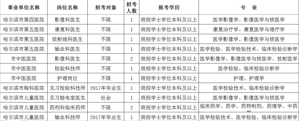 黑龙江哈尔滨市卫生和计划生育委员会招聘