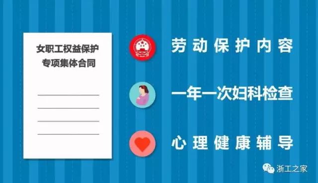 “当当当”,这就是“女职工权益保护专项集体合同”,这是劳动者一方和单位行政方签订的专项合同,这个合同里要明确女职工劳动保护的内容、女职工一年一次的妇科常见病检查、女职工心理健康辅导等等,内容有很多,具体看协商,如果协商够给力,你的福利、待遇……总之,你懂的!
