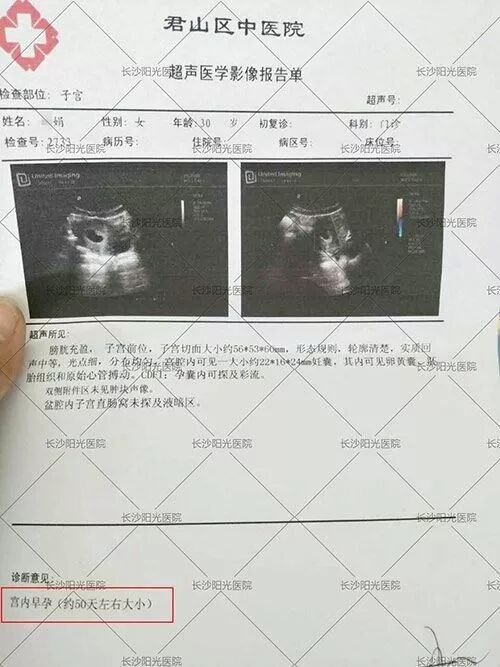 *娟在其它医院B超检查显为宫内早孕50天左右