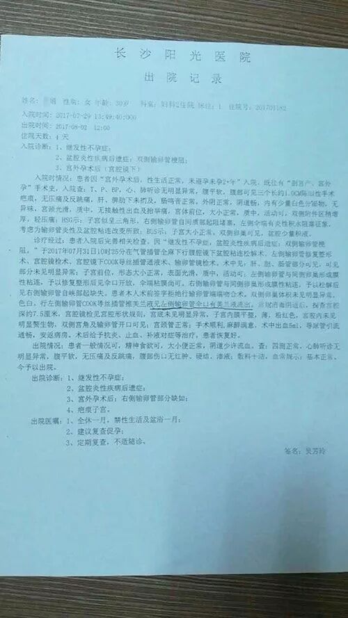 这对于2年来都对孩子心心念念没有停止过渴望的*娟来说无疑的晴天霹雳,而眼下试管与手术已成为二者必须选择一个,这让她陷入了深刻的忧虑中。做试管,无法保障成功几率以及花费数以万计的费用,让她望而却步,而手术所担心的风险,也让她无法抉择。最终,经过与家人的再三斟酌,她选择了到湖南省知名的生殖专科医院——长沙阳光医院进行手术治疗。