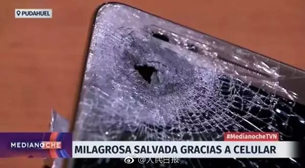 【国产手机又挡子弹 智利男子腹部中枪仅受轻伤】前几天智利媒体报道,当地一小伙和叔叔从银行取钱出来后被三名歹徒跟踪抢劫,歹徒朝小伙腹部开枪,但子弹被身上的华为手机挡住,小伙命大只受了轻伤。