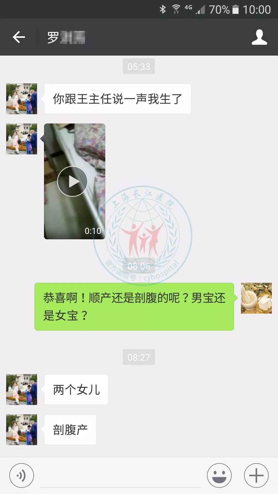 为了表达对医生的感激之情,孩子刚出生,罗女士就立即让黄先生拍了视频和照片,向主治医生王丽云主任报喜来了。