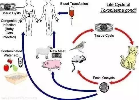 猫是弓形虫的终宿主,主要通过感染猫的粪,和捕食老鼠和鸟获得弓形虫感染。在室内圈养,不食活物、生水的猫不易被传染。
