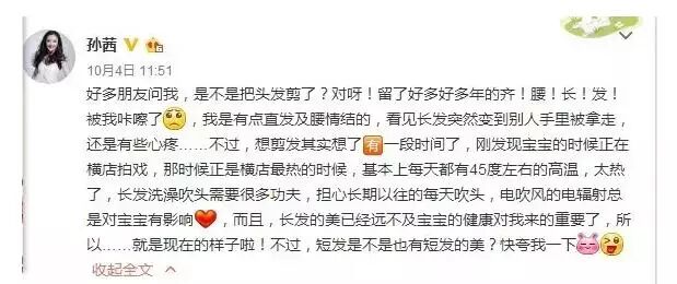 10月4号明星孙茜发了微博,表示她剪头发是担心电吹风对宝宝有影响。其实这是个彻彻底底的谣言!