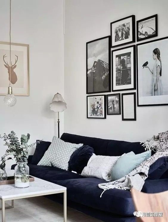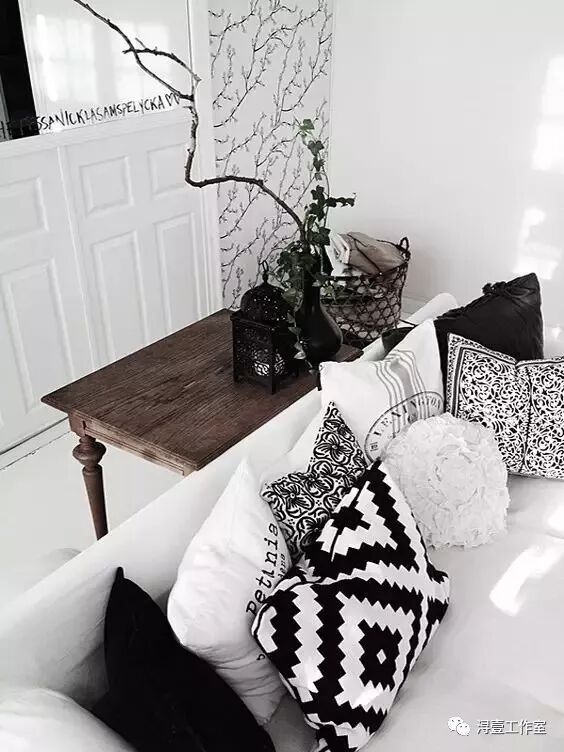 ▲黑白配永远是经典,加上一些简单的几何元素,无论是布艺沙发还是皮沙发,都能很好地进行搭配。