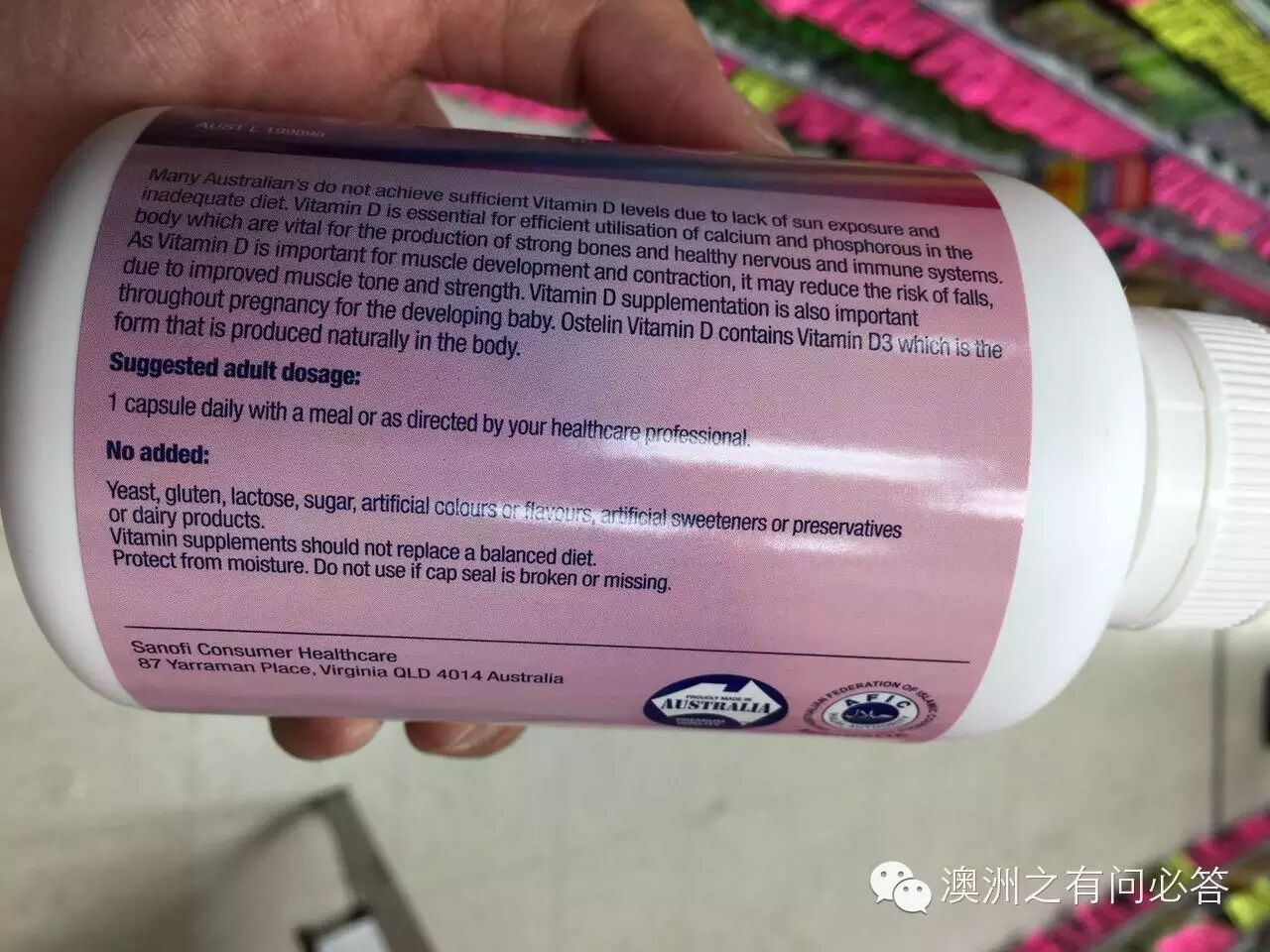 Ostelin含维他命D3,帮助钙质吸收。