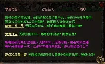 根据玩家成长分别开放的三个层次打宝地图,让您的传世之旅充满未知挑战!
