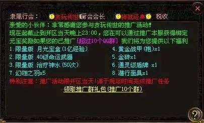 最后再给广大玩家一个大大的福利,只要能够在闲暇时间做一个小小的推广,即可换来丰厚的礼包。