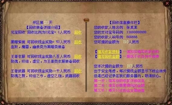 RMB自助回收,确保元宝、装备永久保值!