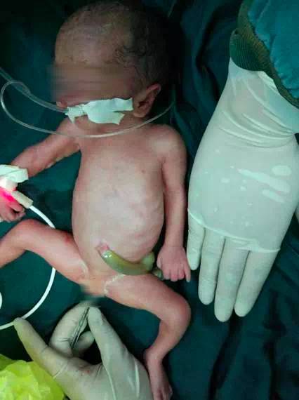 凌晨5点18分,裘主任取出了重980克的宝宝。