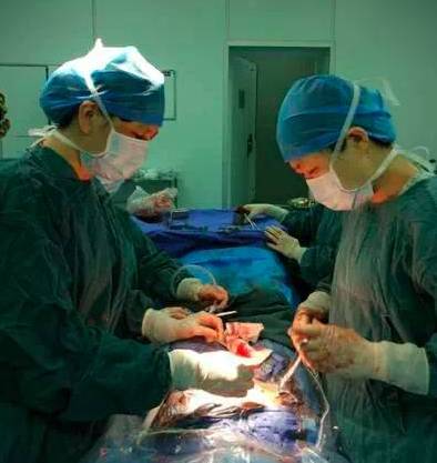 一场有序的抢救开始了。剖开陈女士的子宫,大家看到了草绿色的羊水,胎儿缺氧时间已长,子宫内还有大量积血块,胎盘早剥面积很大。