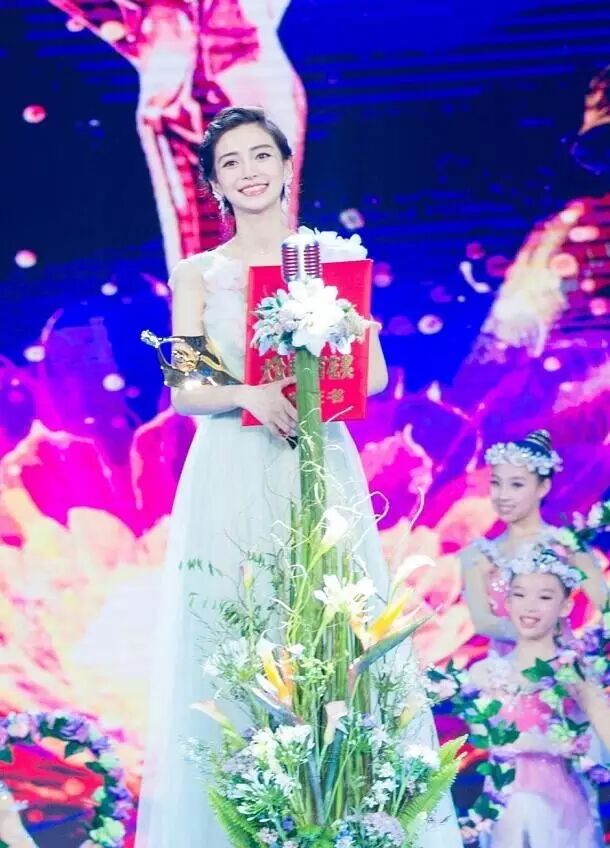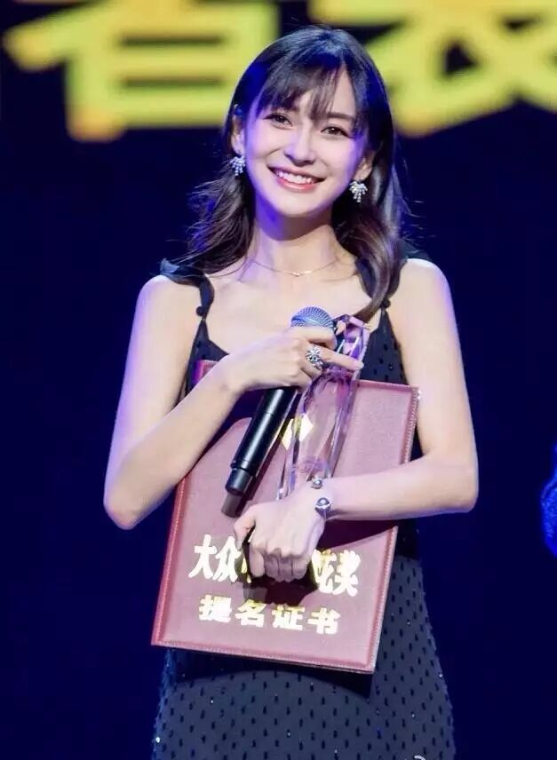 上台领奖时她是这样的温婉大方粉色妆容↓