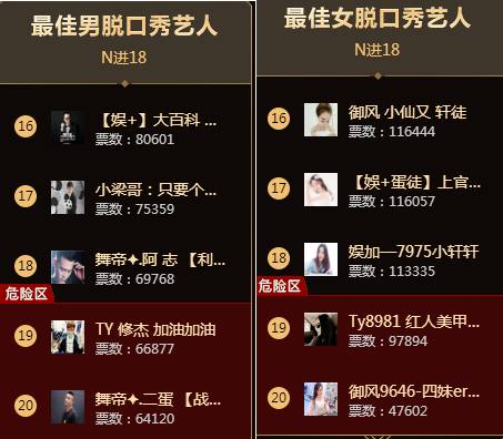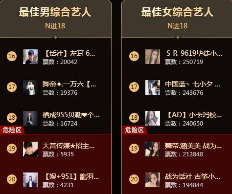 而综合组,男综较为平静,毕竟前五的存在基本是无可动摇的!女综在最后时刻竞争激烈,最终以3W票的差距,涵美美及小微淘汰!