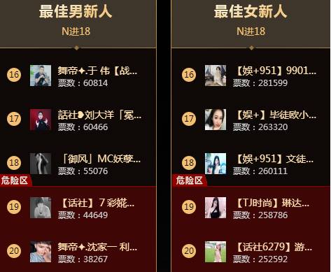 新人组,最后利哥出手保住于伟,七彩花环及利哥徒弟出局!女新方面竞争较为激烈,直至最后一刻,票数仅仅相差不到1W!