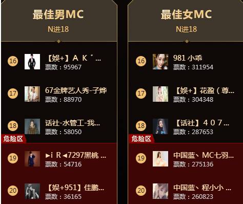 男MC相对较为平稳,虽然只相差3000+票!女MC在最后时刻,七羽被秒,泪洒直播间!中国蓝两员大将遗憾出局!(七羽作为老牌MC,在第一轮出局是大家没想到的)