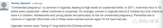 此外,有网友也指出,在乌干达,意外怀孕很正常: