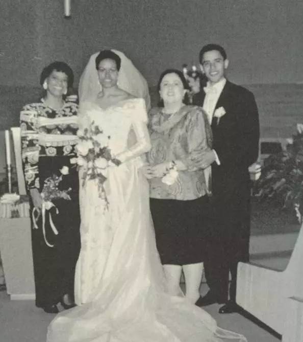 ▲妈妈在奥巴马和米歇尔的婚礼上