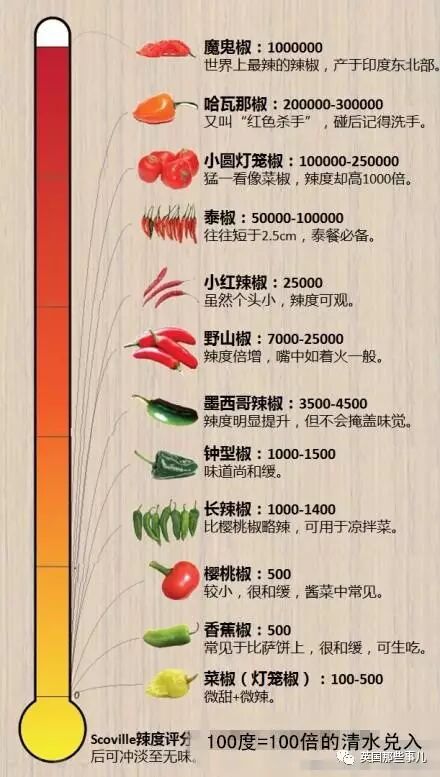 鸟眼辣椒的辣度大概有200,000史高维尔,跟世界排名第二的哈瓦那椒不相上下。