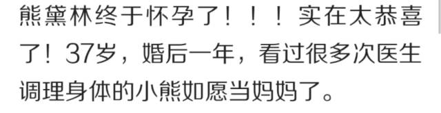 在这个消息出来之前,熊黛林曾在微博称自己“吃了睡,睡了吃”,当时已经有精明的网友怀疑她有孕,怀孕了是喜事,但当时却有网友和媒体猜测她是故意要气郭富城,和郭富城叫板。