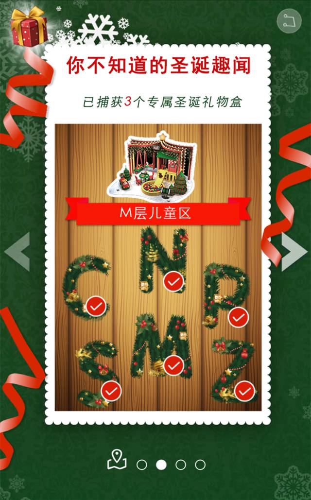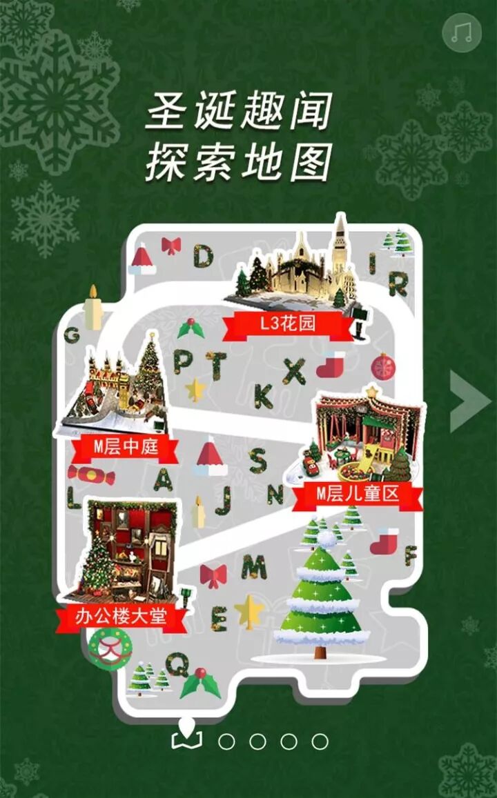 当你经过商场内的圣诞装置时,打开手机蓝牙和微信摇一摇,会摇出现一个类似“探险地图”的画面(如下图画面所示)。