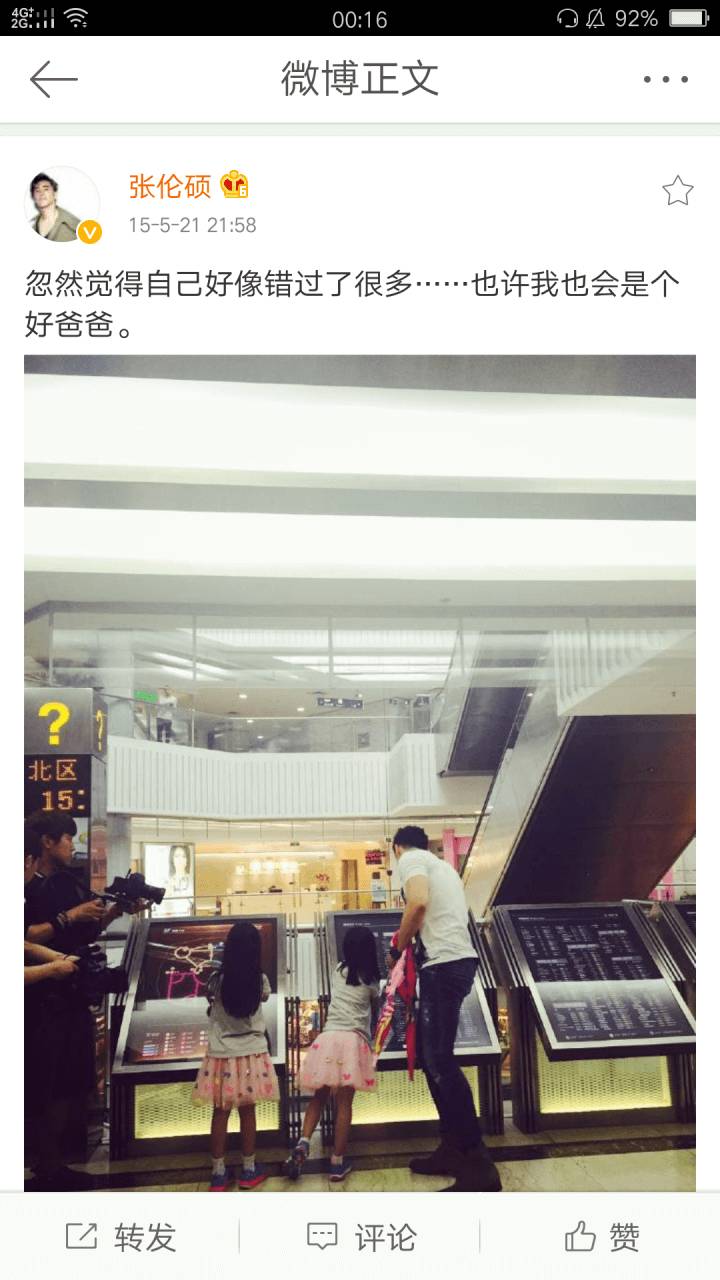 张伦硕还带着考拉上了《爸爸去哪儿》,完全真情实感地爱着考拉,不像作秀。两个人更是经常带着孩子出去旅游。
