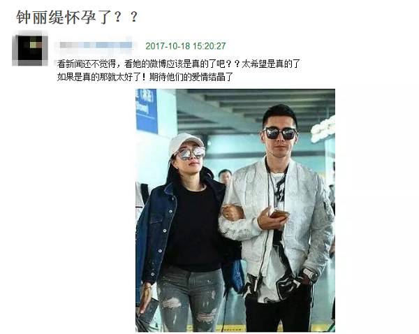 关键是这张照片配的文案:“钟丽缇怀孕了?”