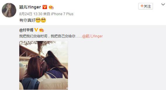 付辛博和颖儿传了近两年的绯闻,还曾经一起上过相爱节目,在今年八月份终于公开承认恋情了,这是个众所周知的秘密,大家并不意外。