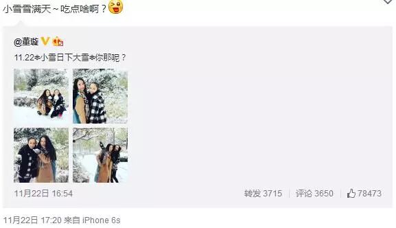 小编发现,佟丽娅自从怀孕之后,很少出席活动!发个微博是和董璇一块玩雪!
