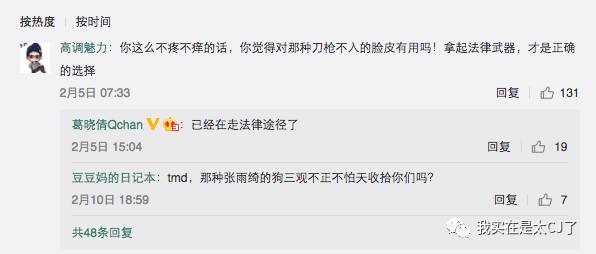网友替她捉急,说你这么不痛不痒根本没有用,要拿起法律武器啊!葛晓倩回复已经在走法律途径了。