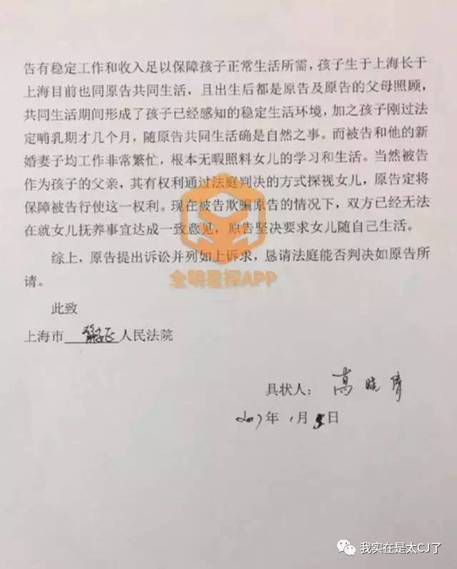 从诉讼状上的内容来看,葛晓倩的诉讼请求除了女儿归自己之外,还要求袁巴元承担女儿的抚养费,此外起诉状里还说到了一个事实——袁巴元用哄骗的手段规避了和葛晓倩结婚以及给女儿上户口的正常程序。