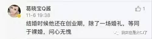 葛晓倩自己的说法是结婚时袁巴元坚称自己处于创业期,只有婚礼没有别的,自己问心无愧。
