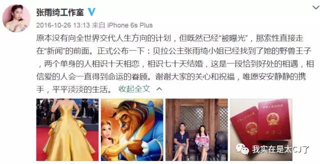 没想到转身张雨绮工作室就宣布两人不是新恋情,是新婚姻!相识十天相恋,相识七十天结婚,名副其实闪婚。