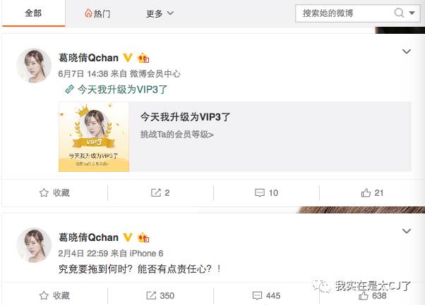 在那之后葛晓倩微博停更,之后只有一条新浪系统发的会员升级微博(。