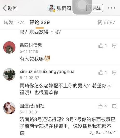 还有人在张雨绮微博底下留言,说张雨绮的东西被葛晓倩丢出来,时间地点都和爆料吻合。