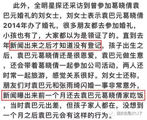 而且5月爆料时知情人还提到另一件事:14年袁巴元和葛晓倩的婚礼,朋友们都已经领了证的,直到张雨绮和袁巴元结婚之后朋友们才发现葛晓倩和袁巴元当时没有登记。