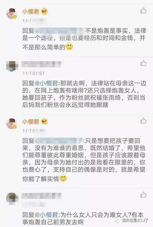 她之前也回复过网友,说女儿照片被张雨绮po到网上后,自己选择默默删除了微博内所有有关女儿的照片,是因为“妈妈最应该做的就是保护好孩子,别把孩子推到风口浪尖,别利用孩子炒作。”