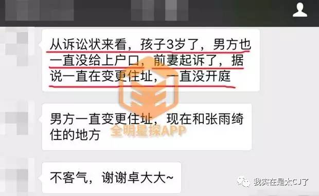 还有人向当时还没消失的卓老师爆料,说自己和袁巴元是邻居,9月初的时候,袁的老婆出差了,然后张雨绮就来了,张雨绮还给袁的小孩带了玩具,说张雨绮和他家小孩玩的挺好,还一起出去玩了。