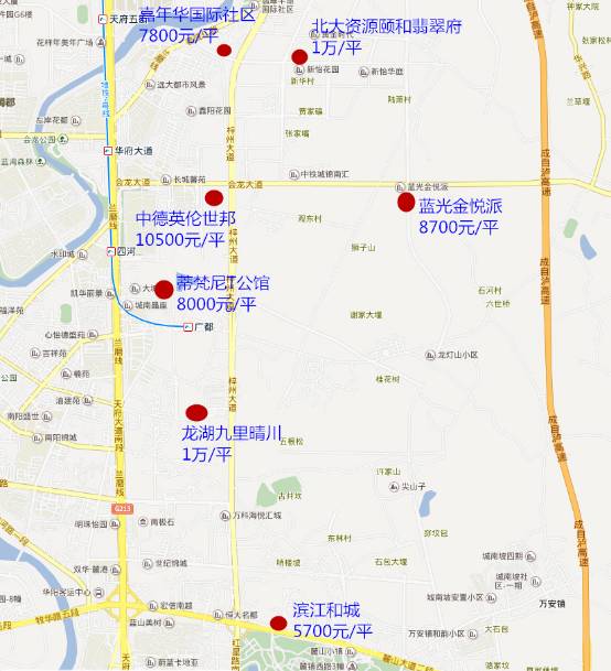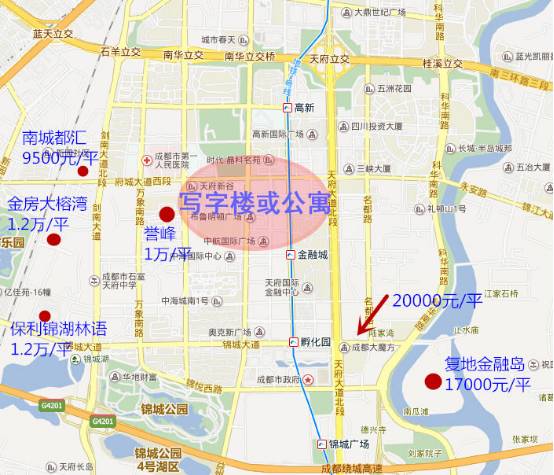 但是开发商对板块的炒作概念就被无限放大了,基本上剑南大道以东的都说自己是金融城板块: