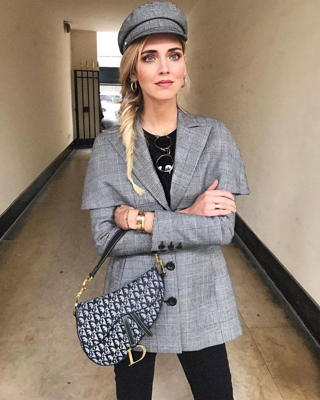 ▲格纹套装搭配Dior手包,整个人容光焕发,状态好到爆。看到这里,我不禁开始期待起Chiara未来的准妈妈造型了!
