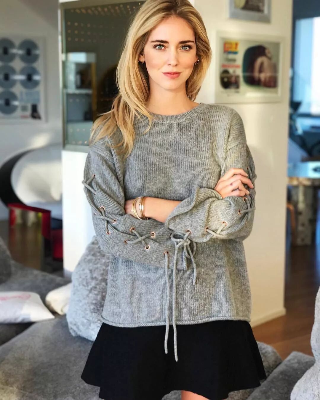 ▲毛衣配短裙,简单时髦且不容易出错,无论是红黑还是黑灰都是非常经典耐看的配色。不得不说,Chiara真的每一张图状态都超好,常年飞往世界各地还能保持这样的完美状态,一百昏!