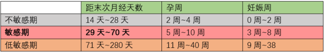 1、不敏感期(胚胎早期):末次月经后14~28天,即妊娠0~2周。