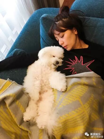 也有人说可能是照片角度问题,不过我去看了前两天贾静雯晒得一张照片,她抱着狗狗睡觉的一张。