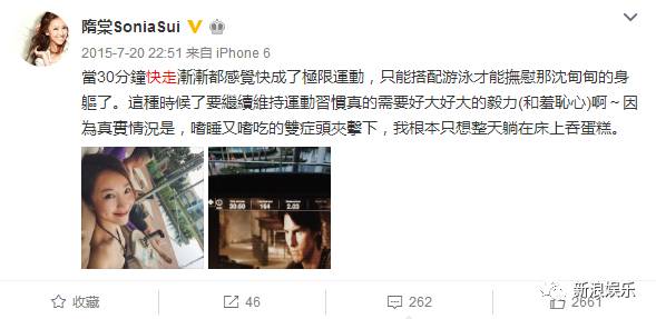 她的真实情况其实是嗜睡又嗜吃,但也要强迫自己坚持运动习惯。