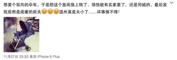 “想要个双向的伞车,于是把这个放闲鱼上准备转了,结果很快就有买家要了,最后发现买家居然是闺蜜的前夫……”