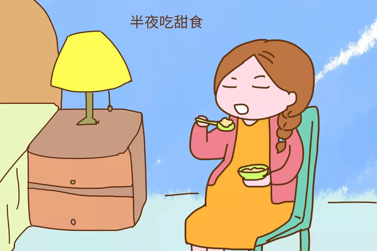 甜食是女性的心头好,怀孕了也不例外。而且很多孕妈觉得晚上吃点甜食可以更抵饿。但是晚上吃甜食不仅对孕妈的身材是大忌,对健康也有很大的威胁。孕妈半夜吃甜食,那么本来可以被消耗的能量会因为孕妈已经转入睡眠而无法消耗,从而只能变为脂肪储存起来了,时间长了,孕妈的赘肉就多了。