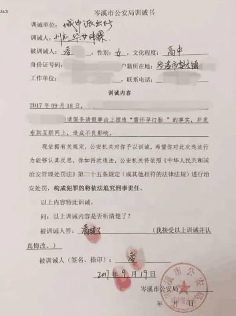 9月18日晚9时许,岑溪市公安局城中派出所接到某中学报警称,有人将一名在校学生请假条的请假事由改成“怀孕需打胎”,并发到互联网上,对学校造成恶劣影响,要求派出所协助调查。