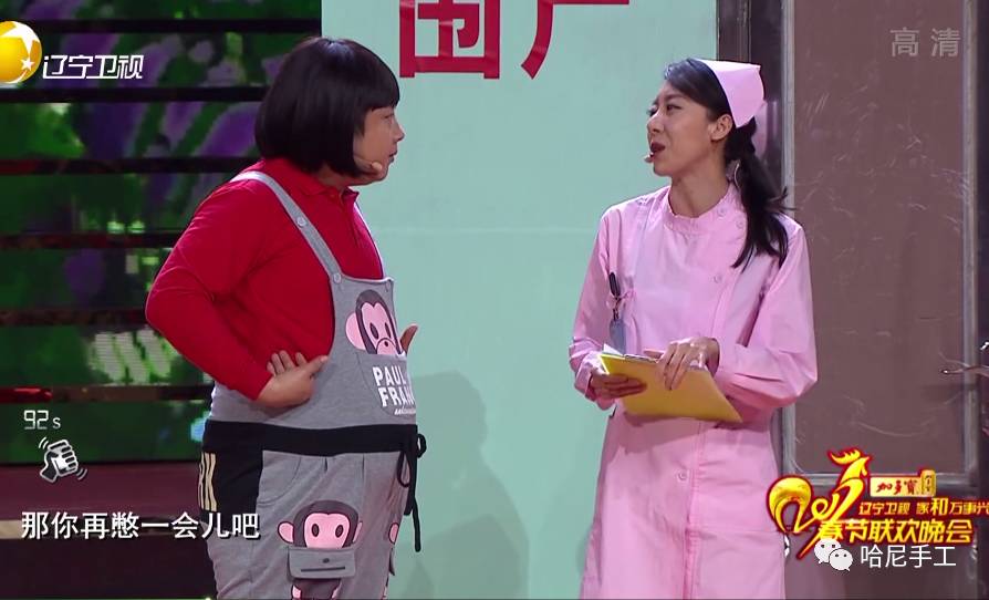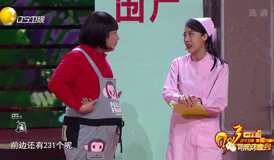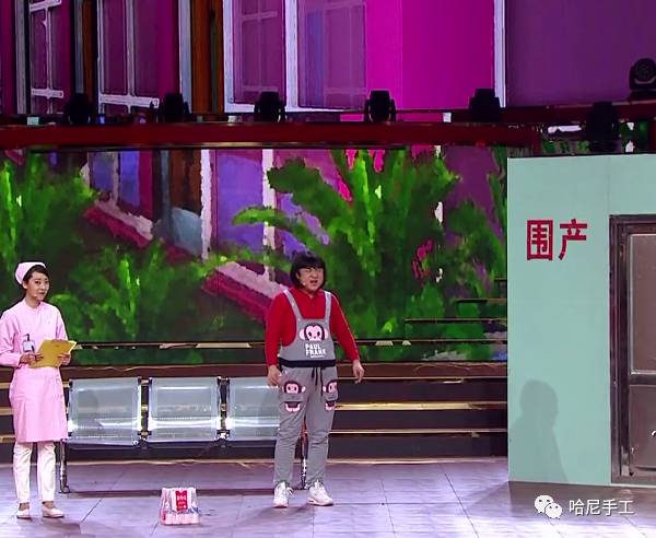 小品一开始的画风是这样的,乔杉的装扮一出来,我就已经狂笑不止(原谅我笑点非常低)这个孕妇裤和手扶腰的姿势,还是很到位的。