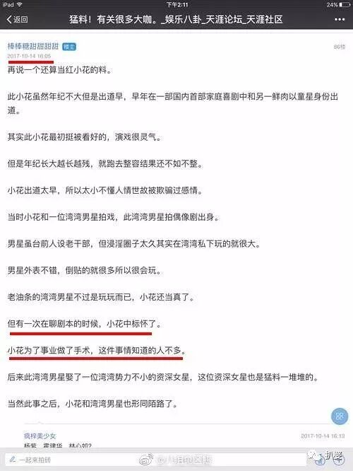 10月14号,早已过气的天涯论坛突然爆料某小花和某台湾男星曾经恋爱并怀孕流产,爆料内容几乎是量身定制般的直指杨紫霍建华。